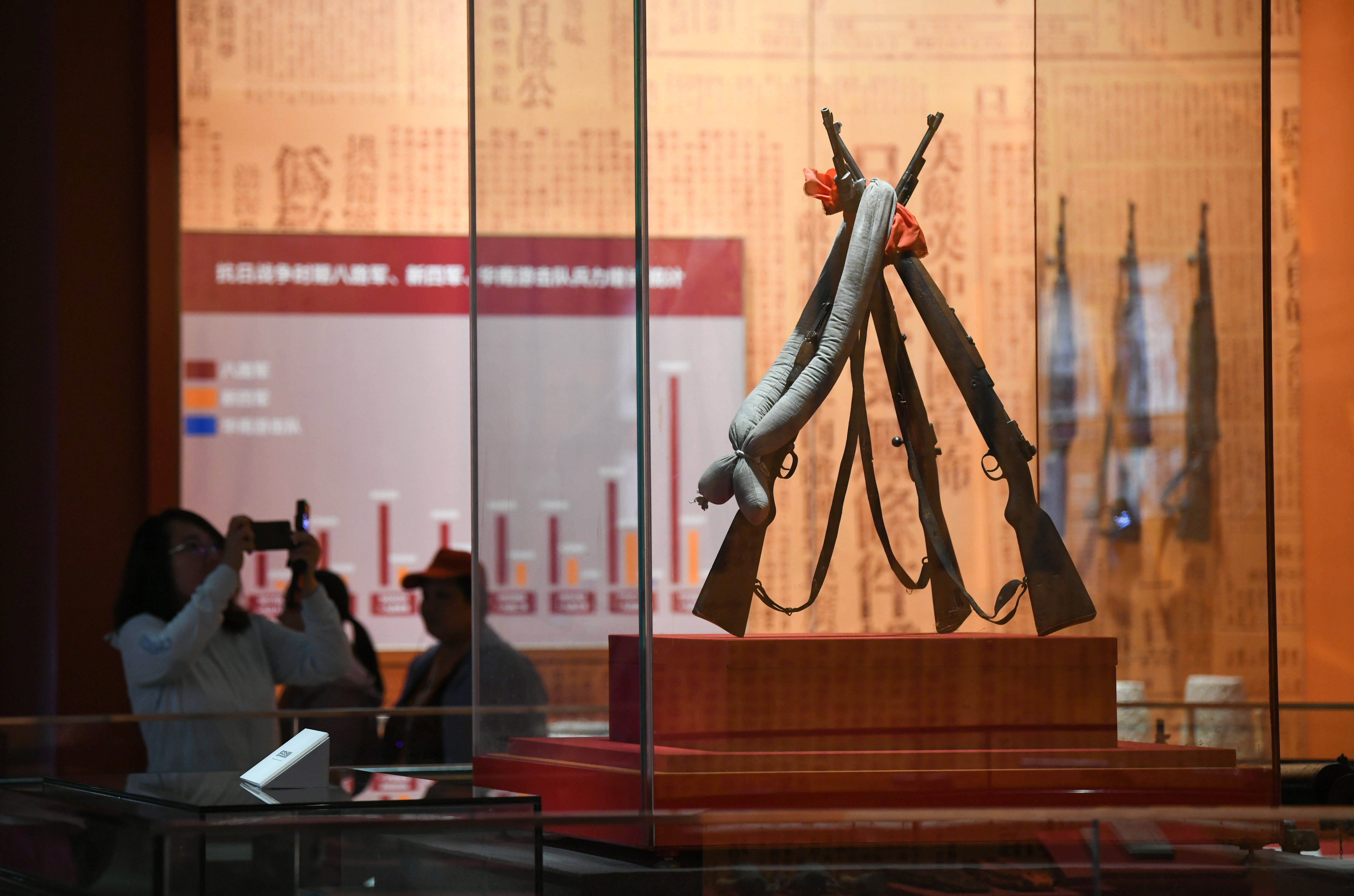 游客在延安革命纪念馆参观。新华社记者 张博文 摄宝塔山