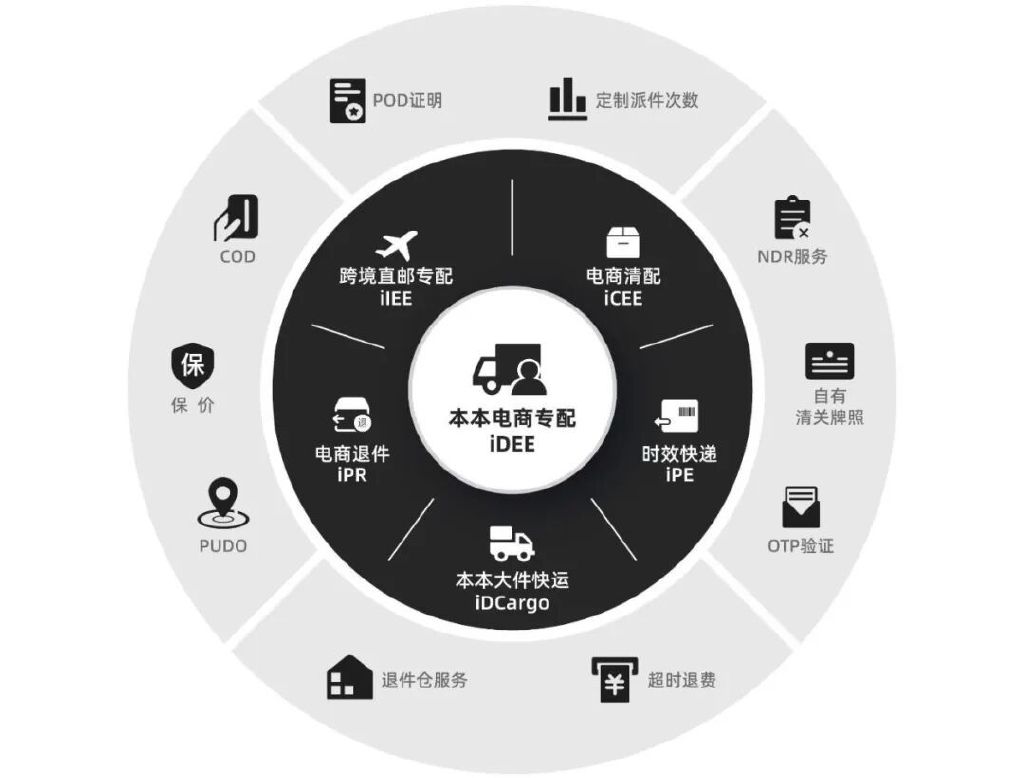 本本电商专配的网络为底座,搭建出电商退件、时效快递、电商清配、跨境直邮专配、本本大件快运五大产品,基本能覆盖所有主流场景。
