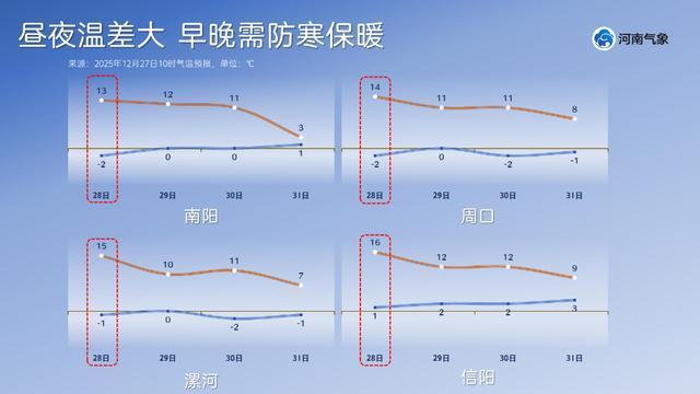 今明两天,我省仍受西北气流控制,维持晴朗天气,同时白天最高气温明显上升,尤其是明天,多地最高气温将升至15℃上下,午后的暖意显著。不过,早晚寒意依旧十足,全省最低气温徘徊在0℃或以下,昼夜温差普遍超过10℃,局部甚至可超15℃!早晚外出务必做好保暖,谨防感冒。
