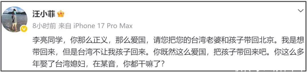 那么,在孕晚期的妻子工作之余还忙着安排月子中心的时候,汪小菲在做什么呢?他在为自己“发声”。在他某短视频平台账号被永久封禁之后,他先是直播责骂平台创始人,之后又质问平台CEO,现在则将矛头对准了平台副总裁,发布多条动态怒怼。让人哭笑不得的是,汪小菲又在发文的第二天早上将多条发文删除了,只留下最新发布的一条。