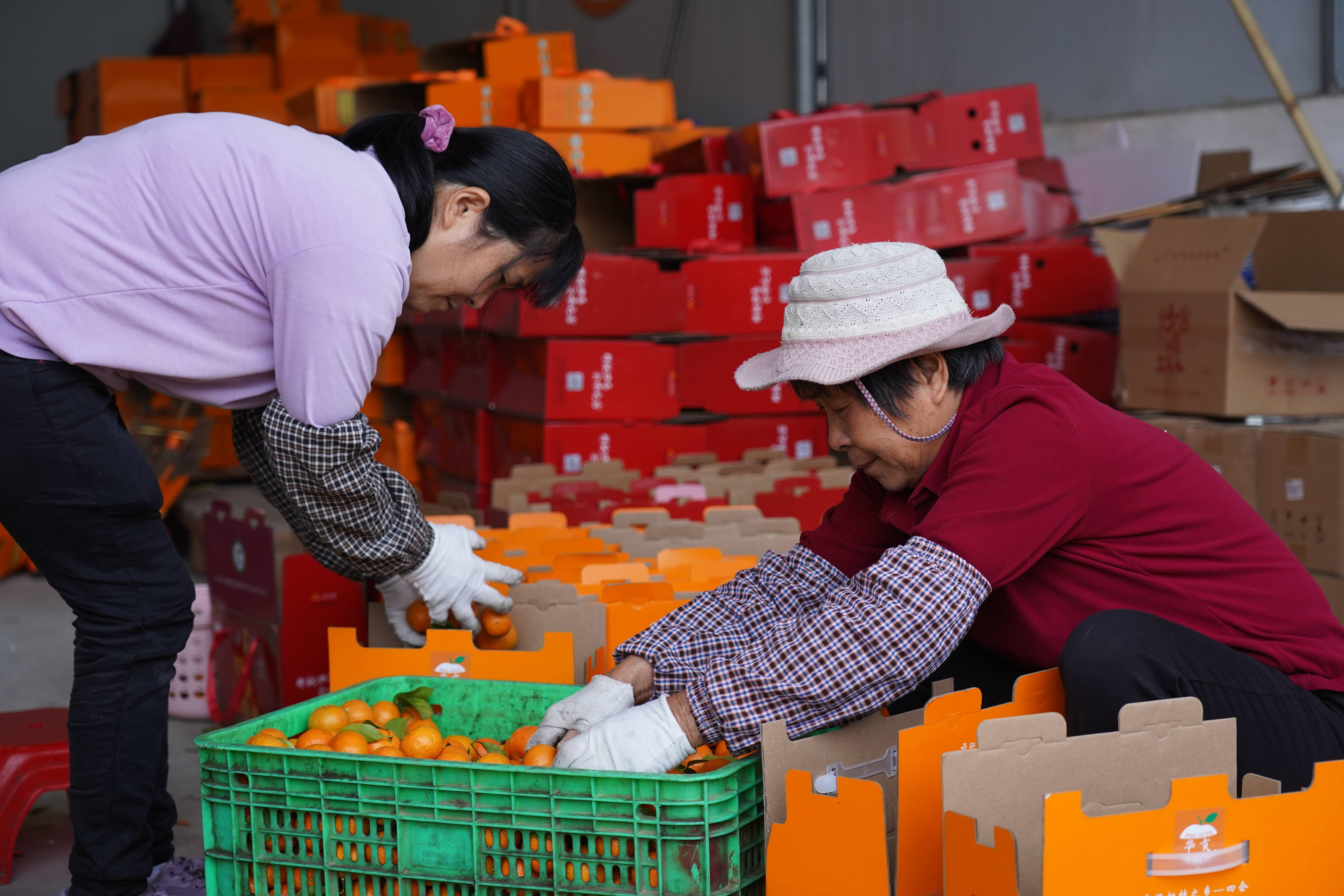 图为工人打包四会沙糖桔。新华社记者 邱晨 摄四会年均气温约22摄氏度,阳光充沛,气候湿润。黄田镇党委委员黄森荣介绍,柑桔的品质,取决于地理与气候条件;一般全年平均气温在20摄氏度或以上较适宜柑桔生长,太热或太冷都不行。