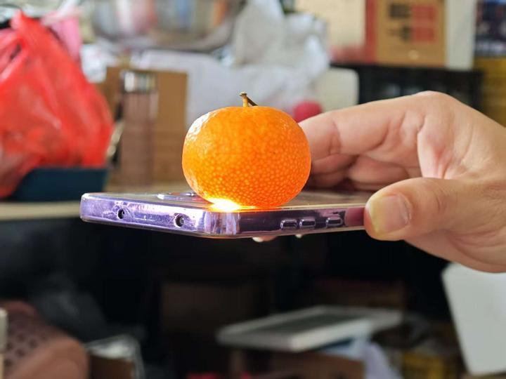 天时地利,让四会沙糖桔口感润滑。“四会的沙糖桔不仅无核,还几乎吃不到桔子常有的那种白丝。”黄森荣用手机灯光贴近果皮,在光线照射下,密布的微小气孔清晰可见,“这种均匀饱满的颗粒感,是四会沙糖桔的名片。”